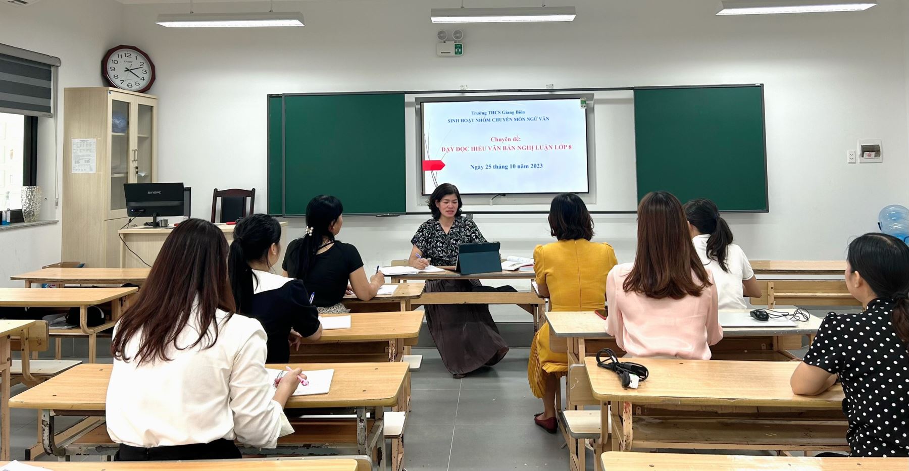 Sau khi kết thúc, các cô giáo trong nhóm chuyên môn đã rút ra những kinh nghiệm sâu sắc cho giờ dạy. Hi vọng việc dạy đọc hiểu văn bản Nghị luận lớp 8 sẽ trở nên thú vị nhận được sự yêu thích của nhiều em học sinh THCS Giang Biên.