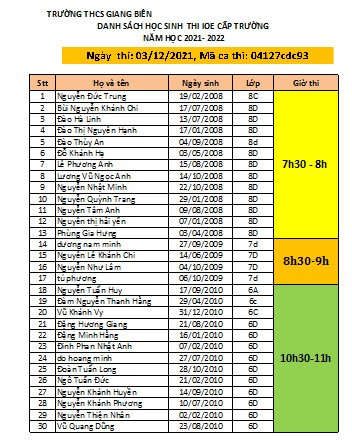 Thực hiện nhiệm vụ năm học 2021-2022, mặc dù tình hình dịch bệnh Covid-19 còn đang diễn biến phức tạp, trường THCS Giang Biên đã chủ động thành lập Hội đồng thi và triển khai thi Tiếng Anh trên Internet (IOE) trực tuyến qua phần mềm Zoom theo đúng quy định.