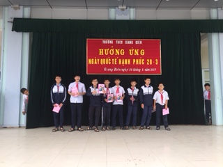 Sáng ngày 20/3/2017, Trường THCS Giang Biên hưởng ứng “ Ngày quốc tế Hạnh phúc 20- 3” với chủ đề “ Yêu thương và chia sẻ”.